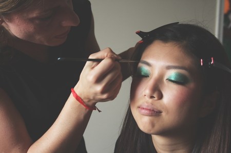 Maria {of MarVel Creations -link}, doing make-up on the lovely Make-up artist, turned model, Chihiro. / Christy – Photographer Assistant and stand-in 🙂